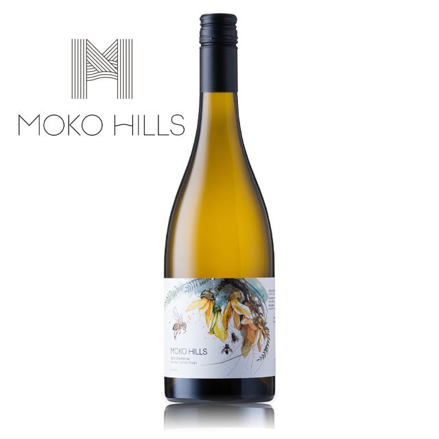 Moko Hillsのワインには、そのワインの特徴を象徴する生物群を表現したアート作品を添えています。シャルドネのラベルには、ニュージーランド固有種のコーファイが描かれています。コーファイに、ヨーロッパミツバチと在来種のハナバチ2種が寄り添っています。これらの蜂はMoko Hillsに生息する多様な植物の受粉に欠かせない存在です。