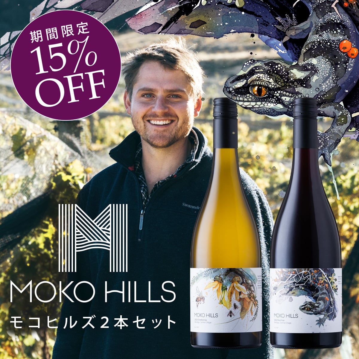 大地と動植物へのオマージュ、その土地を投影するワイン『モコヒルズ』の味をお得にお楽しみくださいませ!