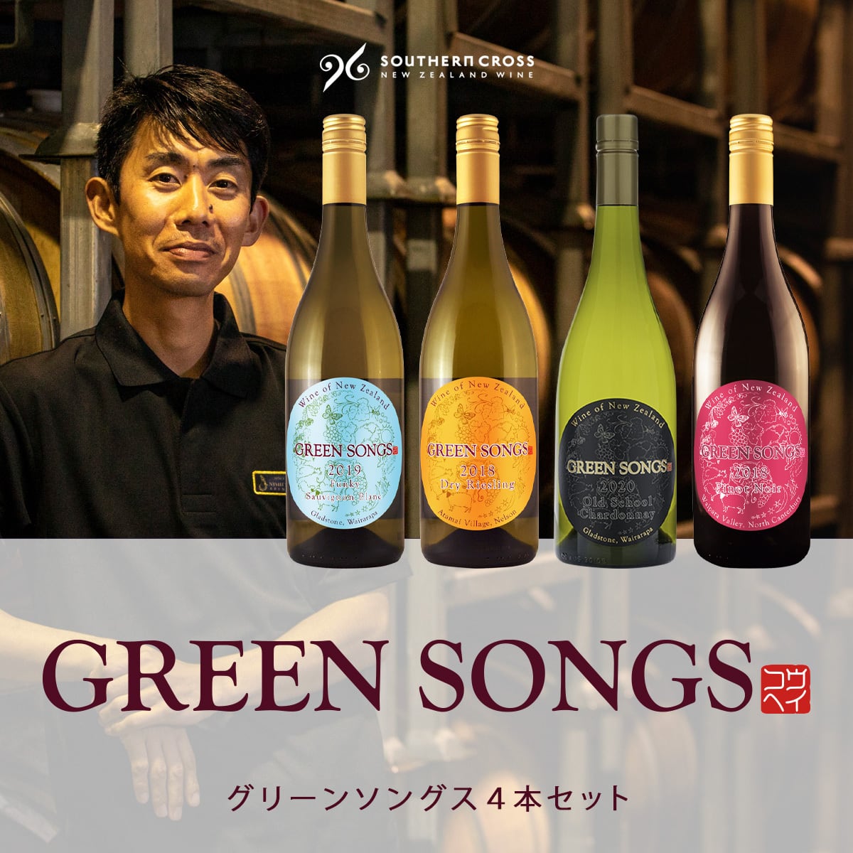 この度、そんなグリーンソングスを堪能していただけるよう、ファンキーソーヴィニヨンブラン、リースリング、シャルドネ、そしてピノノワールのベーシック4本をお得にご購入いたけるワインセットをご用意いたしました!